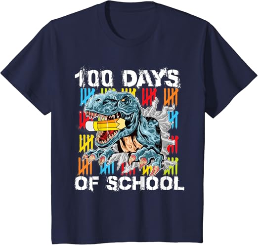 100th Day Of School Dino Kids Happy 100 Days Dinosaur T Rex T Shirt